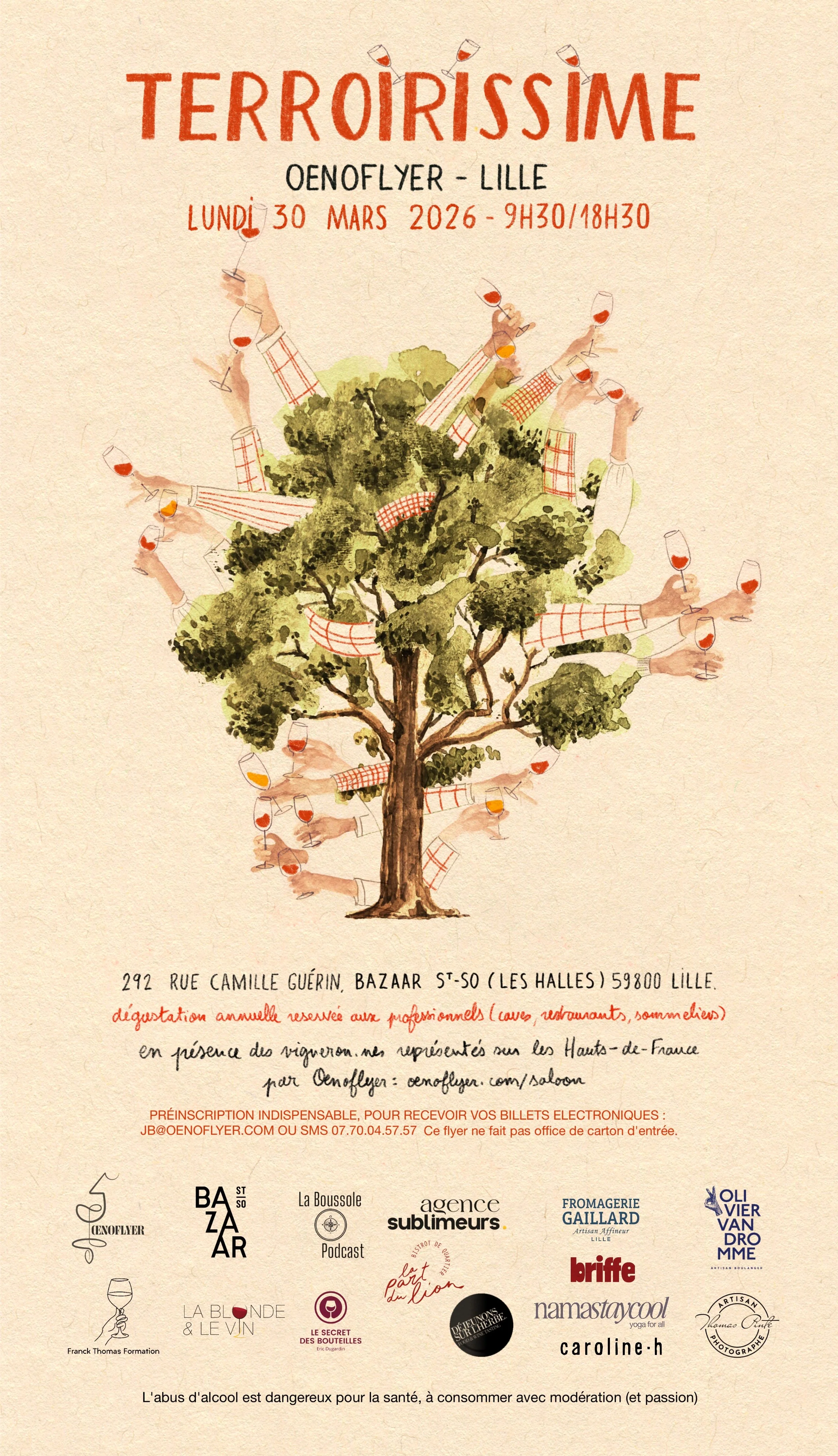 POUR LE SALOON: demandez dès aujourd’hui votre billet électronique par texto au 07 70 04 57 57 ou email jb@oenoflyer.com Vous devez être impérativement pré-enregistré(e). Nous avons simplement besoin du prénom/nom/email pour chaque personne SVP.
